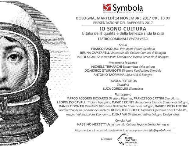 Save the date: 14 novembre presentazione a Bologna del Rapporto “Io sono cultura” a cura della Fondazione Symbola
