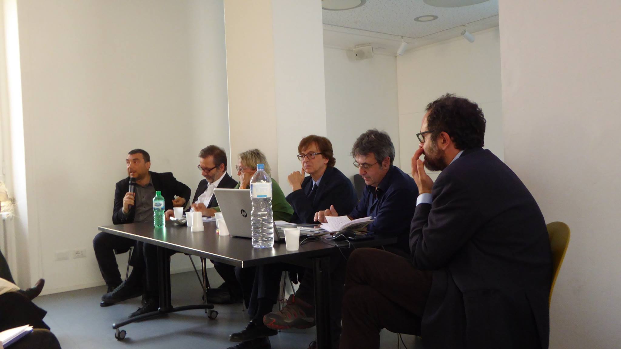 Milano, 17 maggio 2017, Laboratori Formentini per l’Editoria. “Gestione e Politiche per la Cultura. Intorno al libro La formazione al management culturale a cura di A. Taormina. Incontro organizzato da ATeatro. Al tavolo, da sinistra: Lucio Argano, Francesco De Biase, Mimma Gallina, Antonio Taormina, Oliviero Ponte Di PIno, Fabrizio Montanari.