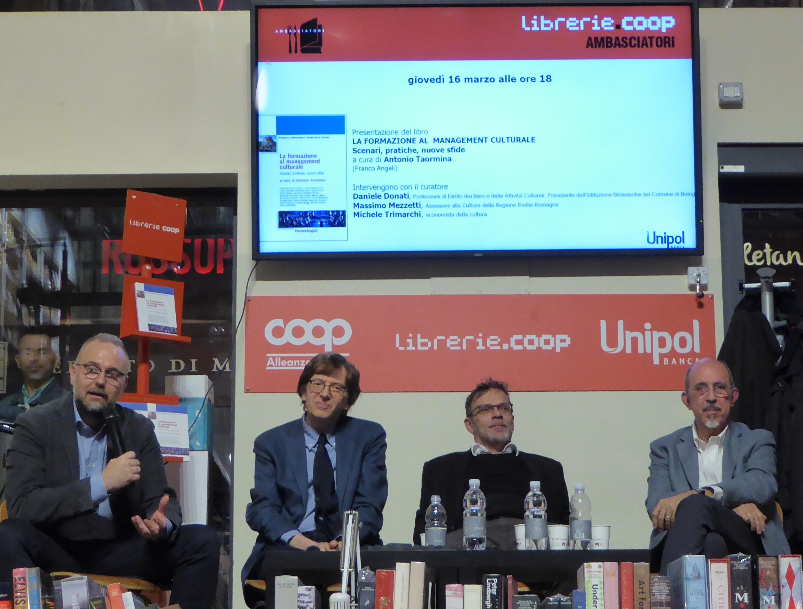 Bologna, 16 marzo 2017. Presentazione a Bologna, presso le Librerie Ambasciatori del libro “La formazione al management culturale” a cura di Antonio Taormina. Nella foto al tavolo, da sinistra: Massimo Mezzetti Assessore alla Cultura della Regione Emilia-Romagna, Antonio Taormina, Daniele Donati, Michele Trimarchi. Nell’ altra foto, il pubblico presente all’incontro. Con Massimo MezzettiMichele TrimarchiDaniele Donati