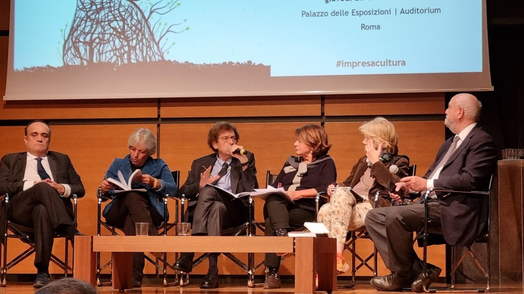 Roma, 26 ottobre 2023, presentazione presso il Palazzo delle Esposizioni il Rapporto annuale 2023 realizzato da FEDERCULTURE 𝐈𝐌𝐏𝐑𝐄𝐒𝐀 𝐂𝐔𝐋𝐓𝐔𝐑𝐀 𝐋𝐚 𝐟𝐨𝐫𝐦𝐚𝐳𝐢𝐨𝐧𝐞 𝐩𝐞𝐫 𝐢𝐥 𝐬𝐢𝐬𝐭𝐞𝐦𝐚 𝐜𝐮𝐥𝐭𝐮𝐫𝐚𝐥𝐞 𝐚𝐥𝐥𝐚 𝐬𝐟𝐢𝐝𝐚 𝐝𝐞𝐥 𝐜𝐚𝐦𝐛𝐢𝐚𝐦𝐞𝐧𝐭𝐨. I lavori sono stati aperti dal 𝐒𝐨𝐭𝐭𝐨𝐬𝐞𝐠𝐫𝐞𝐭𝐚𝐫𝐢𝐨 𝐝𝐞𝐥 𝐌𝐢𝐧𝐢𝐬𝐭𝐞𝐫𝐨 𝐝𝐞𝐥𝐥𝐚 𝐂𝐮𝐥𝐭𝐮𝐫𝐚 𝐆𝐢𝐚𝐧𝐦𝐚𝐫𝐜𝐨 𝐌𝐚𝐳𝐳𝐢, ha presentato il Rapporto 𝐢𝐥 𝐏𝐫𝐞𝐬𝐢𝐝𝐞𝐧𝐭𝐞 𝐝𝐢 𝐅𝐞𝐝𝐞𝐫𝐜𝐮𝐥𝐭𝐮𝐫𝐞 𝐀𝐧𝐝𝐫𝐞𝐚 𝐂𝐚𝐧𝐜𝐞𝐥𝐥𝐚𝐭𝐨. 𝐄’ 𝐢𝐧𝐭𝐞𝐫𝐯𝐞𝐧𝐮𝐭𝐨 𝐢𝐥 𝐏𝐫𝐞𝐬𝐢𝐝𝐞𝐧𝐭𝐞 𝐝𝐞𝐥𝐥𝐚 𝐕𝐈𝐈 𝐂𝐨𝐦𝐦𝐢𝐬𝐬𝐢𝐨𝐧𝐞 𝐂𝐚𝐦𝐞𝐫𝐚 𝐝𝐞𝐢 𝐃𝐞𝐩𝐮𝐭𝐚𝐭𝐢 𝐅𝐞𝐝𝐞𝐫𝐢𝐜𝐨 𝐌𝐨𝐥𝐥𝐢𝐜𝐨𝐧𝐞.Ha fatto seguito una tavola rotonda incentrata sui temi della formazione culturale moderata dal 𝐃𝐢𝐫𝐞𝐭𝐭𝐨𝐫𝐞 𝐝𝐢 𝐅𝐞𝐝𝐞𝐫𝐜𝐮𝐥𝐭𝐮𝐫𝐞 𝐔𝐦𝐛𝐞𝐫𝐭𝐨 𝐂𝐫𝐨𝐩𝐩𝐢. Nella foto un momento della tavola rotonda, da sinistra 𝐀𝐥𝐛𝐞𝐫𝐭𝐨 𝐁𝐨𝐧𝐢𝐬𝐨𝐥𝐢, 𝐌𝐨𝐧𝐢𝐜𝐚 𝐆𝐚𝐭𝐭𝐢𝐧𝐢 𝐁𝐞𝐫𝐧𝐚𝐛𝐨̀, 𝐀𝐧𝐭𝐨𝐧𝐢𝐨 𝐓𝐚𝐨𝐫𝐦𝐢𝐧𝐚, 𝐄𝐥𝐢𝐬𝐚𝐛𝐞𝐭𝐭𝐚 𝐏𝐚𝐥𝐥𝐨𝐭𝐭𝐢𝐧𝐨, 𝐂𝐞𝐜𝐢𝐥𝐢𝐚 𝐂𝐚𝐬𝐨𝐫𝐚𝐭𝐢, 𝐔𝐦𝐛𝐞𝐫𝐭𝐨 𝐂𝐫𝐨𝐩𝐩𝐢.