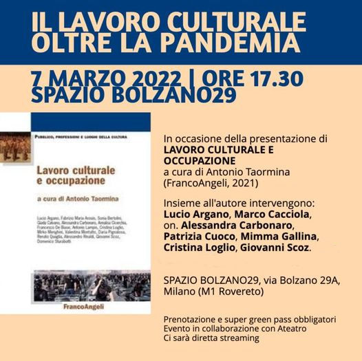 Il lavoro culturale oltre la pandemia – presentazione del libro “Lavoro culturale e occupazione”, Milano, 7 marzo 2022, re 17,30 – Spazio Bolzano29 Immagine Rispondi